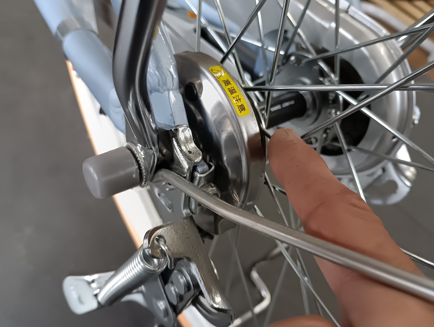 後ブレーキ、ハブ軸付近への